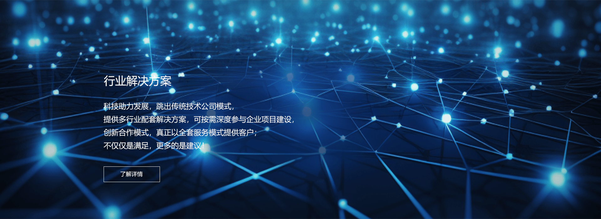 科技助力發展,跳出傳統技術公司模式,提供多行業配套解決方案,可按需深度參與企業項目建設,創新合作模式,真正以全套服務模式提供客戶;不僅僅是滿足,更多的是建議!